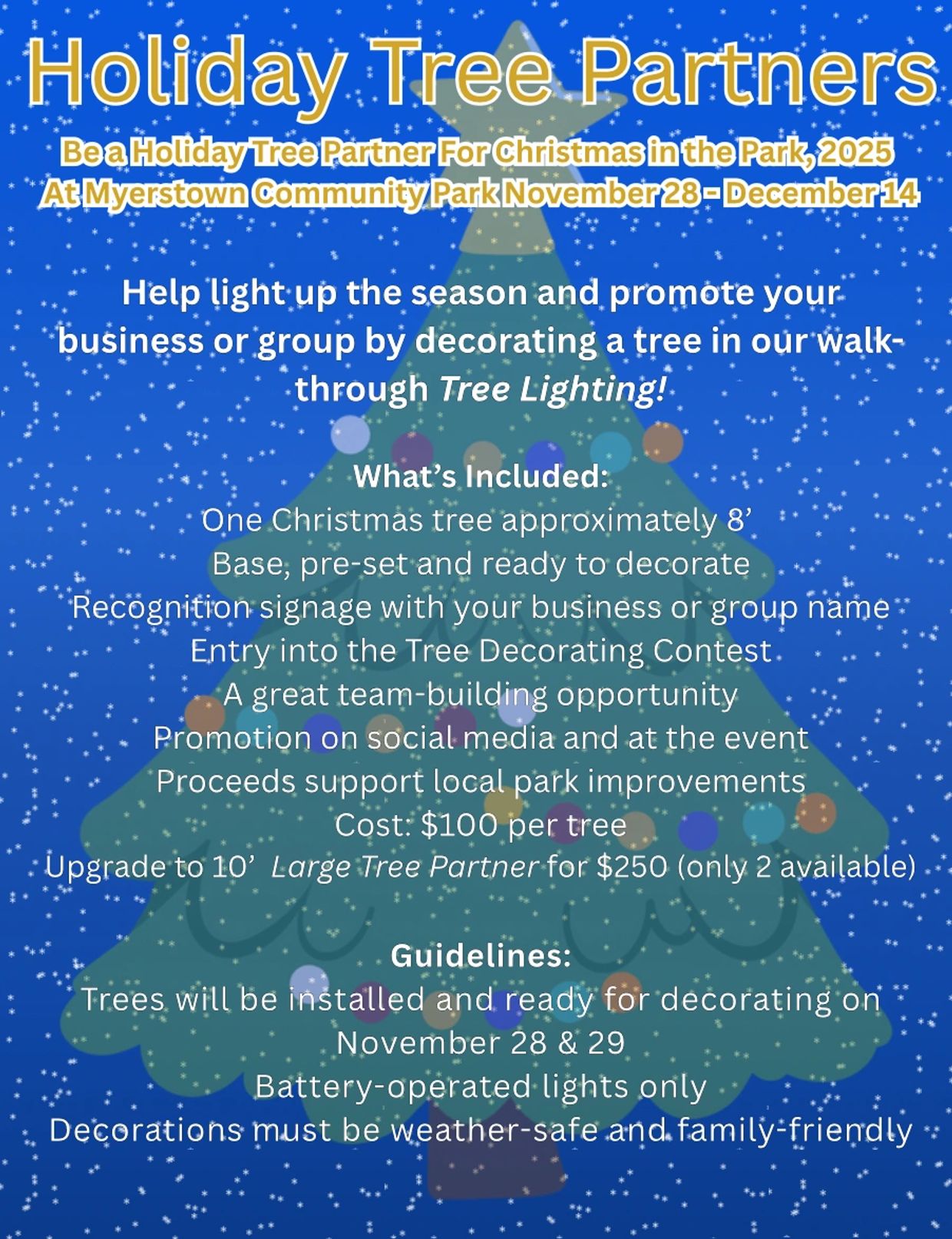 In the same way Elmer C. Ebling once gave this parkland as a gift to the community, we now gather on it to give thanks, lift one another up, and remember the love and grace given to us through Christ. Join us December 13th, at Myerstown Community Park for a Christmas tradition filled with beauty, fellowship, and purpose. Come see the lights, feel the warmth, and celebrate what matters most.Let me know if you'd like a shortened version for postcards or a formal version for press releases.